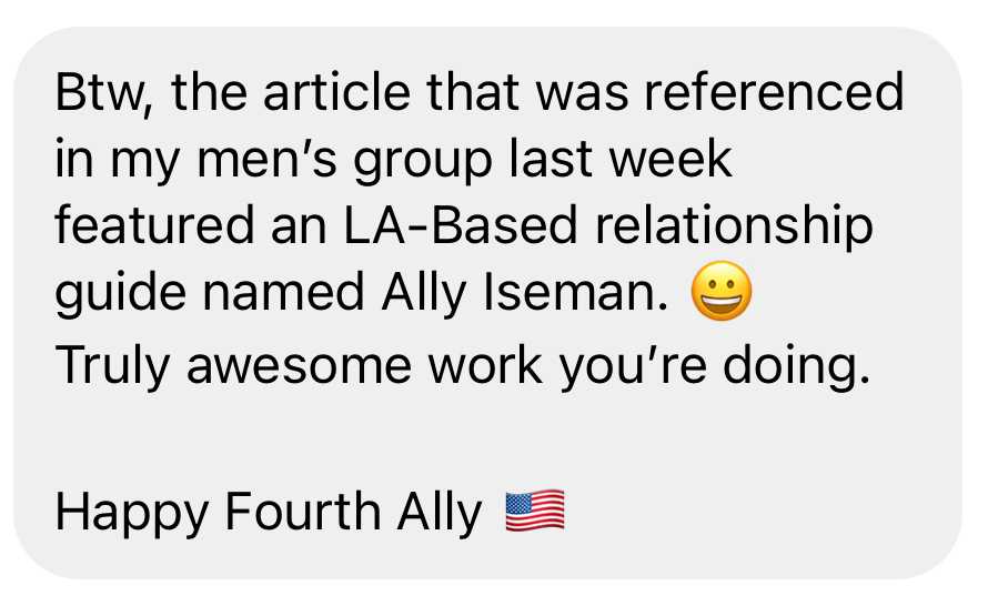 Ally was a game-changer for my wife and I. Vibrantly demonstrating what it means to say an ‘enthusiastic yes’ to life’s possibilities and our own inner desires. She also demonstrated with equal gusto the power of ‘no’ as a means to keep space for what truly makes us feel nourished in the world. A perfect guide to brave new worlds, Ally’s one-of-a-kind mix of spiritual wisdom, sassy humor, and empathetic connection gave my wife and I much of the inspiration, and more importantly, the tools, to navigate this complicated but rewarding lifestyle.
